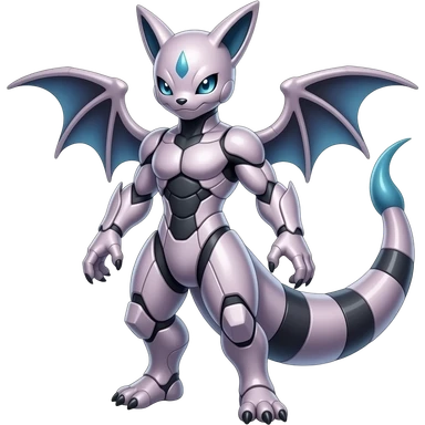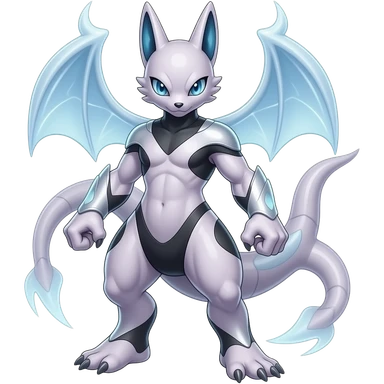 Cool Edgy Shiny Futuristic Ethereal Legendary Mewtwo-Digimon-Genesect-Palkia-Reptile-hybrid full body emoji