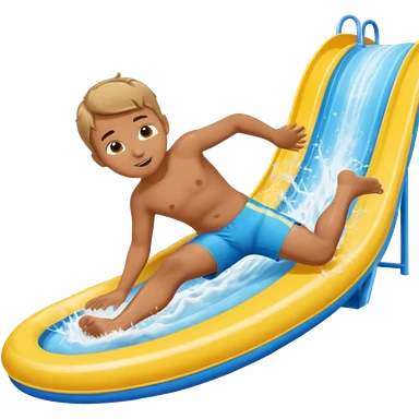 a boy that is sliding on his belly in ON his belly from a waterslide emoji