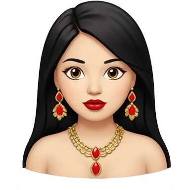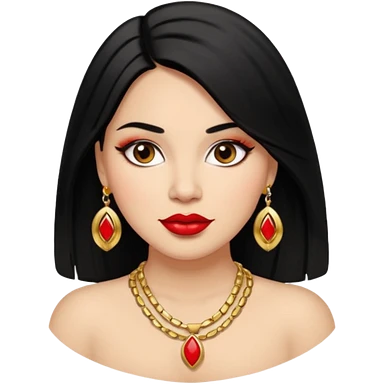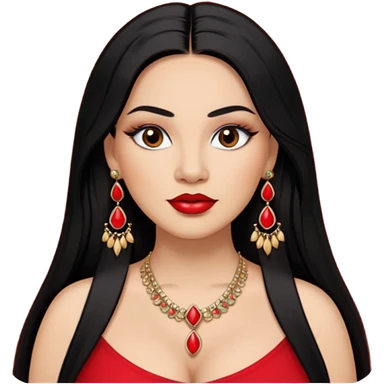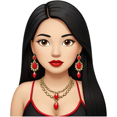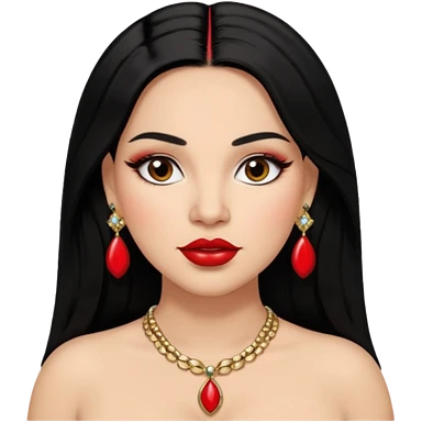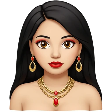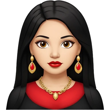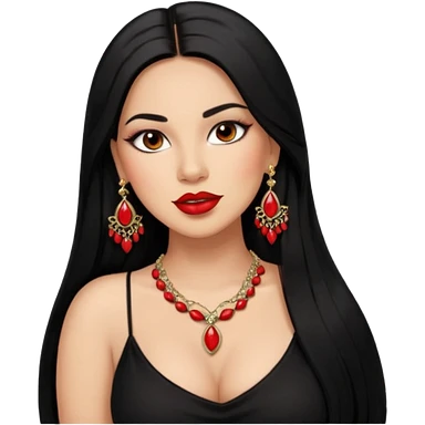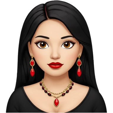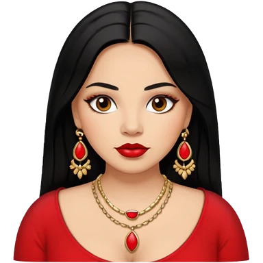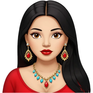 Mexican Light skin brown eyes glamorous full figured women black long straight hair red lips necklace and earrings long lashes emoji
