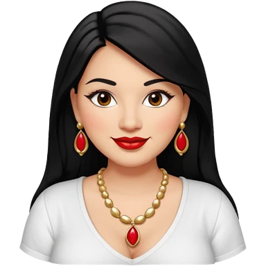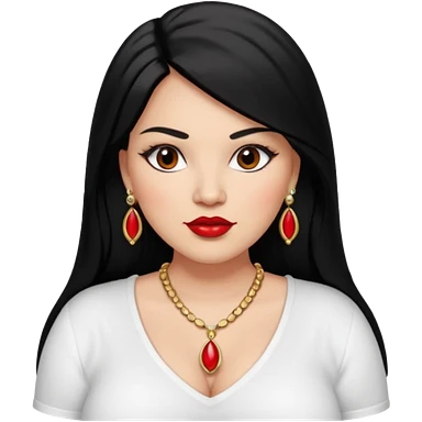 Mexican Light skin big brown eyes glamorous full figured women black medium straight hair red lips necklace and earrings long lashes white shirt emoji