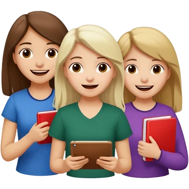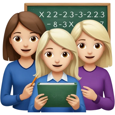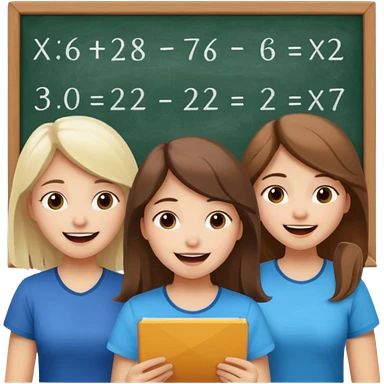 Mexican brown haired girl, white blond haired girl, and white brown haired girl all trying not to laugh while doing math emoji