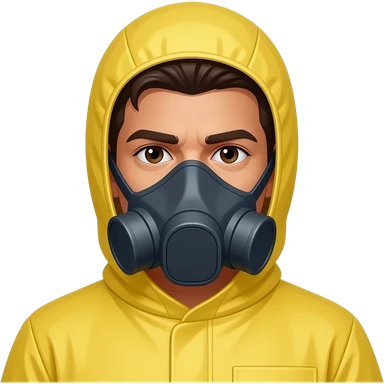 mexican man dark brown hair yellow hazmat suit with hood on and mask emoji
