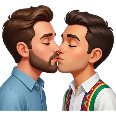 White guy brunette with beard kissing Mexican guy emoji