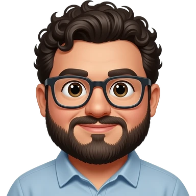 Fat Mexican guy with a disconnect beard and curly hair and glasses emoji