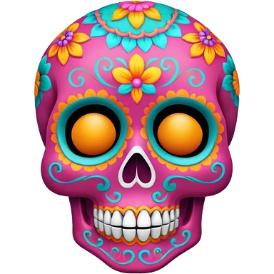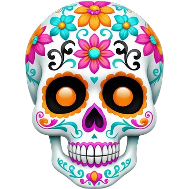 Dia de muertos skull with happy colours (orange, yellow, pink, turquoise) emoji