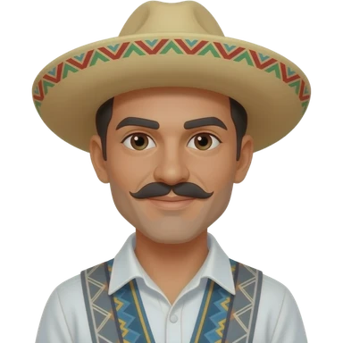 mexican man dark brown hair brown eyes yellow hazmat suit with hood on and mask with sombrero emoji