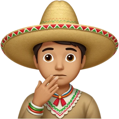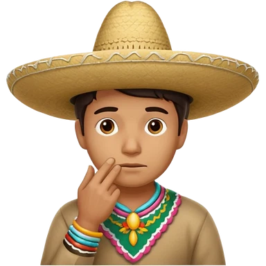 person deep in thought, wearing a traditional Mexican sombrero. The character has a neutral or slightly furrowed expression, one hand gently touching their chin in a classic thinking pose. emoji