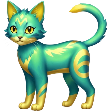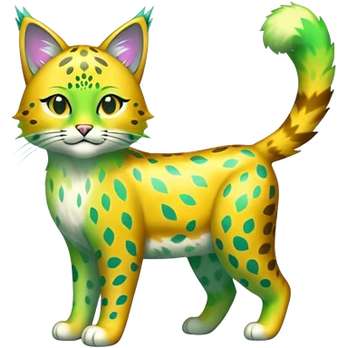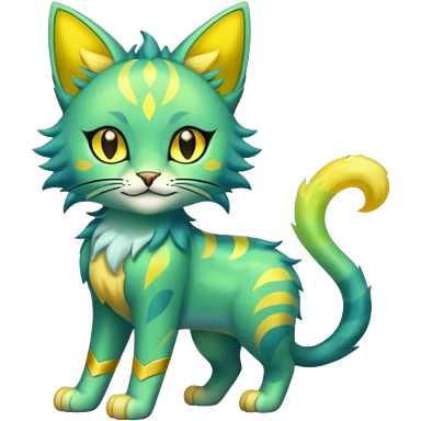Iridescent Green and Yellow Electrike-Sprigatito-Bobcat-Amaura-Aurorus-Shiny-glorp-cat-fusion (full body) emoji