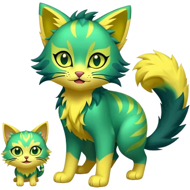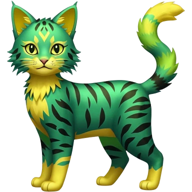 Green and Yellow Electrike-Lucretia-Luxray-Sprigatito-Bobcat-Amaura-Aurorus-Shiny-glorp-cat-fusion (full body) emoji