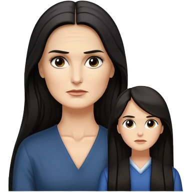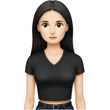 asin girl with black long slick backed hair wearing a dark blue long shirt and a puffy white sleeveless jacket on outside and light blue very baggy jeans with brown boots emoji
