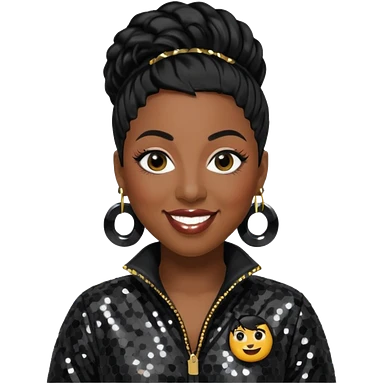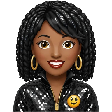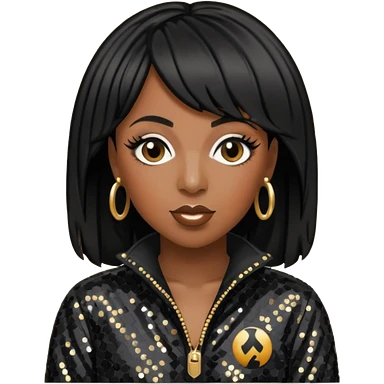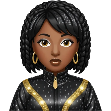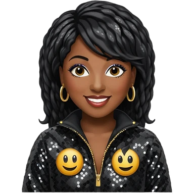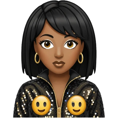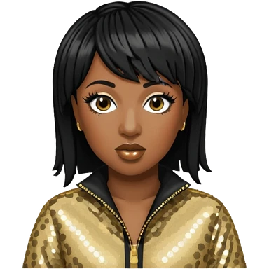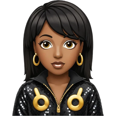 Missy Elliott with black hair, black sequin jumpsuit emoji