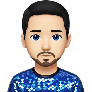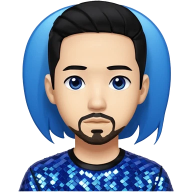 Mike Shinoda with black hair with blue highlight, black sequin shirt, brown eyes emoji