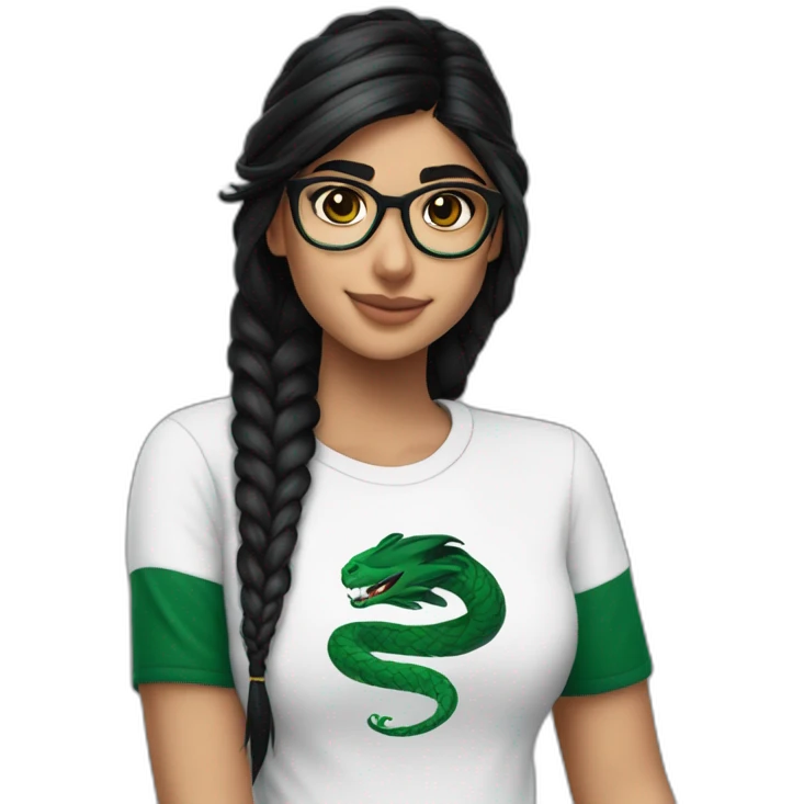 Mia Khalifa black braid white tshirt green sleeves slytherin emblem emoji | AI Emoji Generator