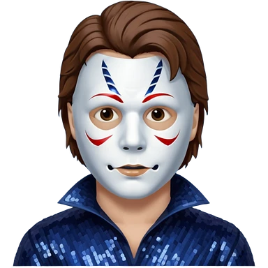 Michael Myers with white mask with brown hair, dark indigo sequin outfit emoji