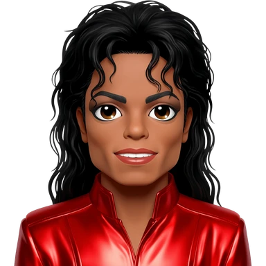 Michael Jackson light skin, long black hair, brown eyes, red and black outfit emoji