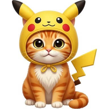 Chat roux avec un chapeau pikachu emoji