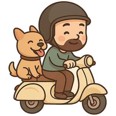 Une créature née du Néant. On dit qu’il murmure dans le sommeil des héros.man and his pet dog riding a vespa emoji