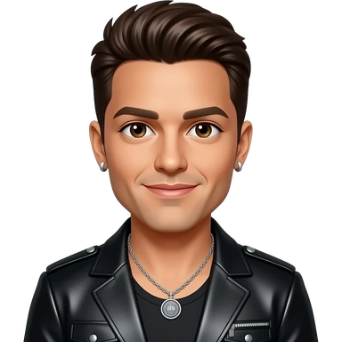 Ricky Martin with brown eyes, brown hair, black metallic latin pop outfit, necklace and earrings emoji