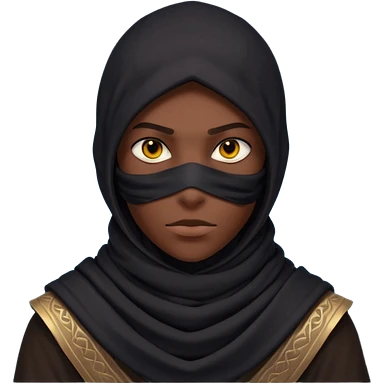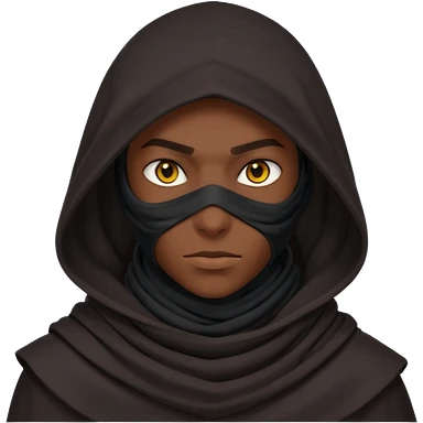 desert assassin portrait, head and shoulders only, dark hood, face scarf, mysterious glowing eyes, stealth vibe, 3D cartoon, mobile game icon style, clean background, no text, no watermark emoji