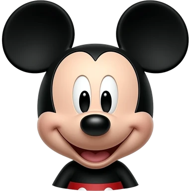 mickey mouse 3D emoji style original character, cute small creature with rounded ears, red outfit, glossy texture, soft shadows, Apple style emoji, minimalistic face, adorable and friendly emoji