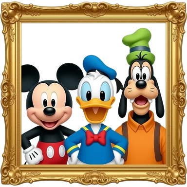A picture frame with micky mouse Donald Duck and goofy emoji