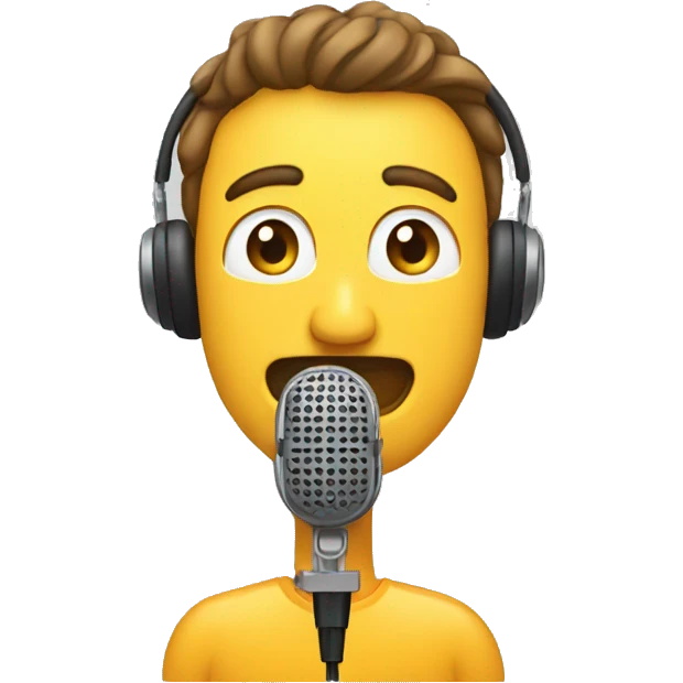 rapero cantando con un microfono de base y audifonos emoji