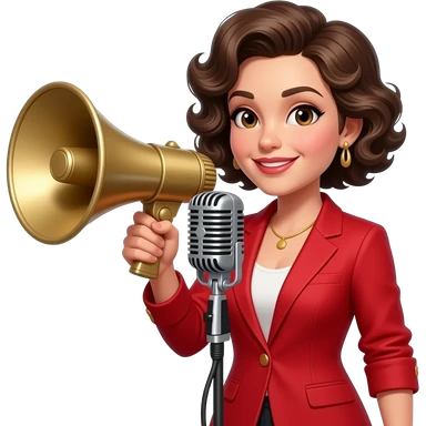 girl shouting into megaphone and holding 2 tickets in hand emoji