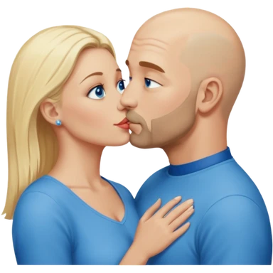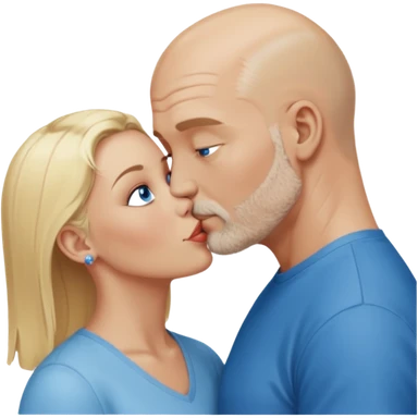 middle age blue eyed white man kissing a sexy dark skin girl curly locks emoji