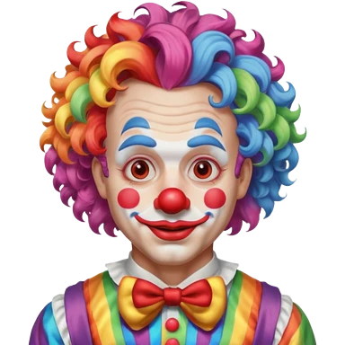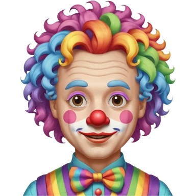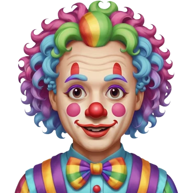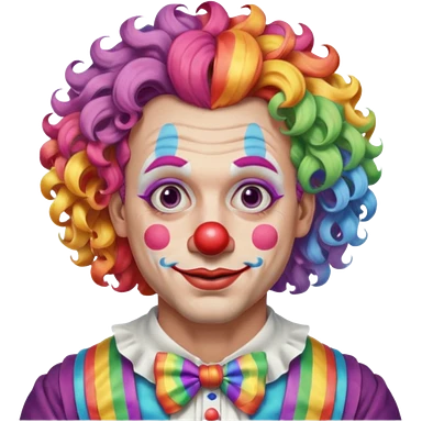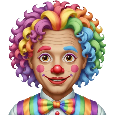 Middle-age man with Curly rainbow hair of clown — soft pastel curls tied high emoji | AI Emoji Generator