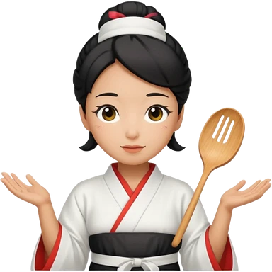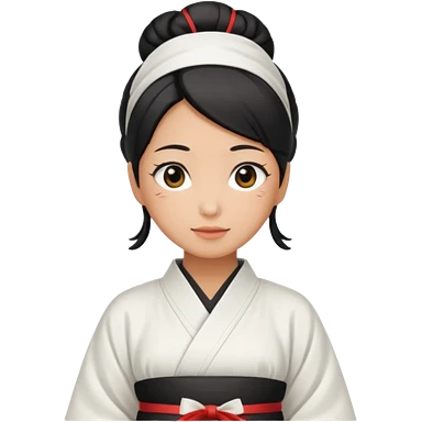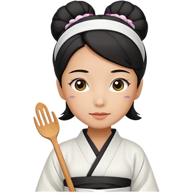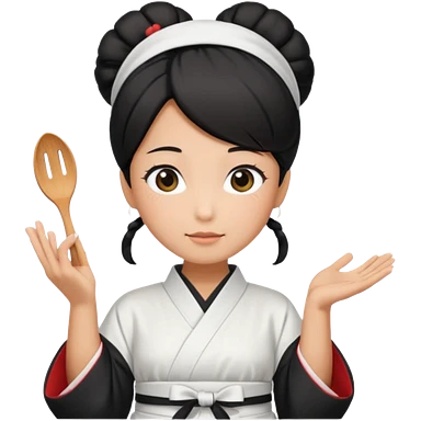 middle age mom with black bun wearing white home kimono and white apron emoji | AI Emoji Generator