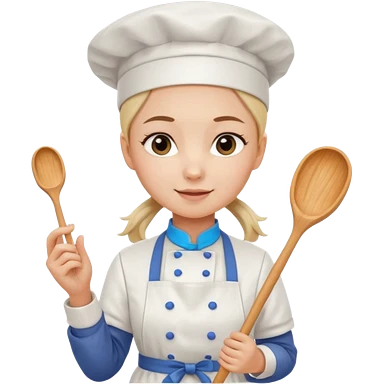 Young female pastry chef - single ponytail, apron, wearing a white hat, holding a piping bag emoji