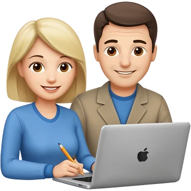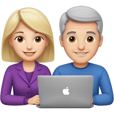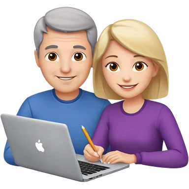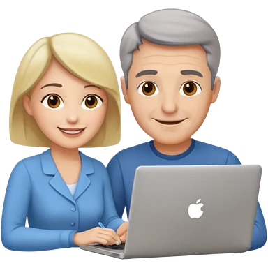 a middle aged man and a womanlooking at laptop and writing and smiling emoji