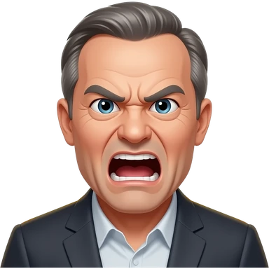older thin man, receding hairline, angry shouting expression, clenched teeth, background subtle flames behind him, head-and-shoulders portrait, centered, 3D glossy emoji style, clean background emoji