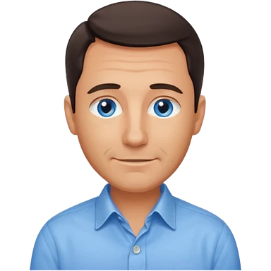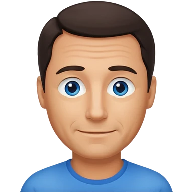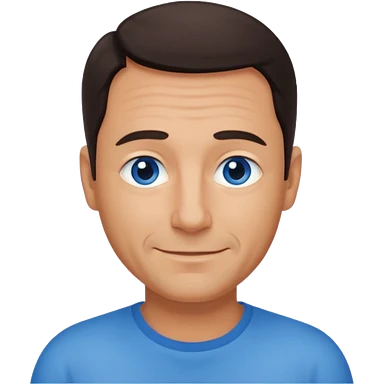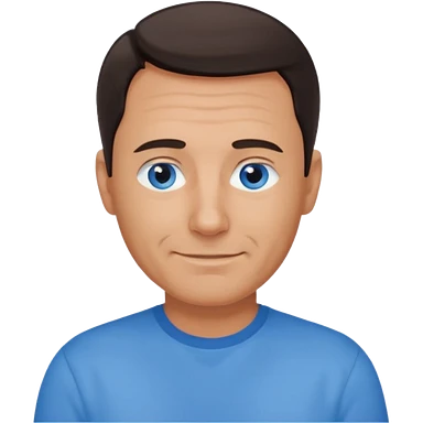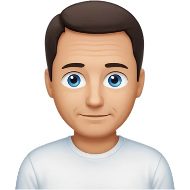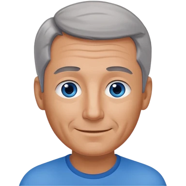 Middle aged man with receding grey and black hair and no beard, blue eyes, shy smile, tanned skin emoji