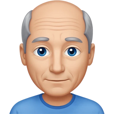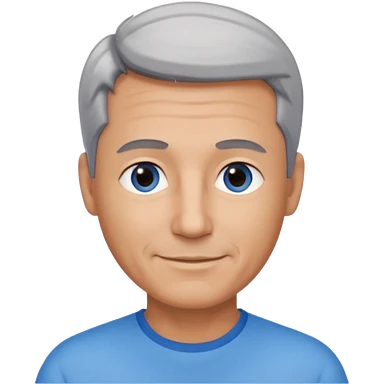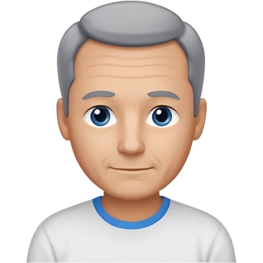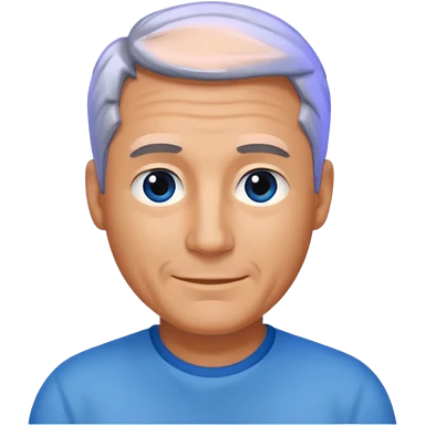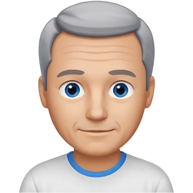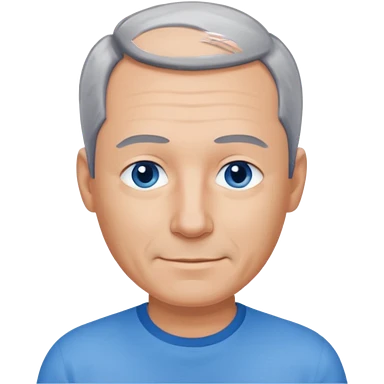 Middle aged man with receding grey hair and no beard, blue eyes emoji