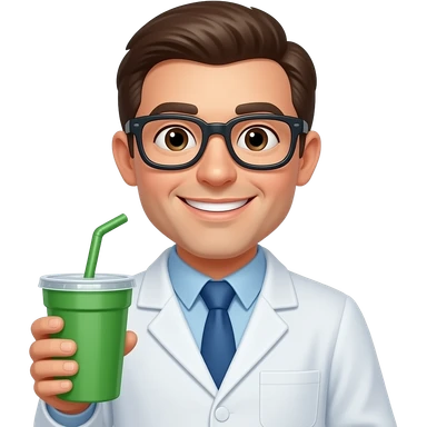a smiley face scientist holding a green tumbler emoji