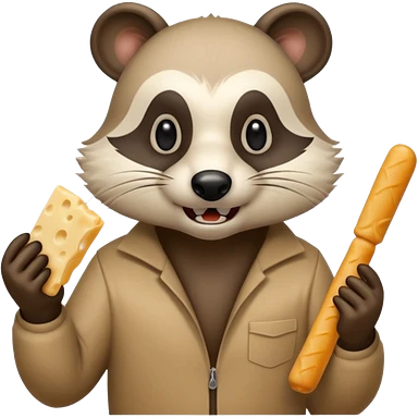 A realistic mad badger bowling while eating cheese sticks emoji
