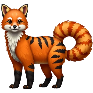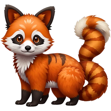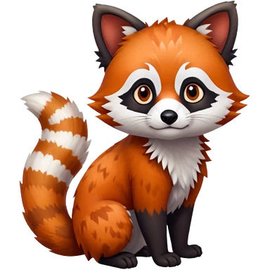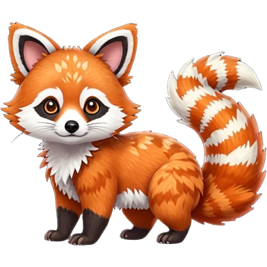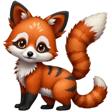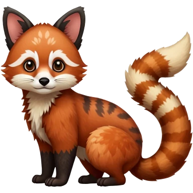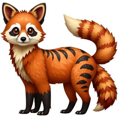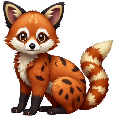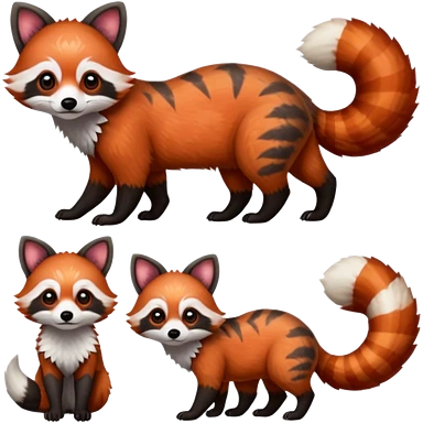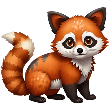 Black-eared Realistic patterned speckled flurry scaly 4-legged quadrupedal Red-Panda-Munchkin-Kitten-Lemur-Raccoon-Dog-Red-Fox-animal-fusion-hybrid, Full body emoji