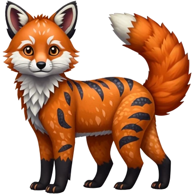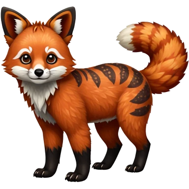 Black-eared Realistic patterned speckled flurry scaly 4-legged quadrupedal Red-Panda-Caracal-Maned-Wolf-animal-fusion-hybrid, Full body emoji