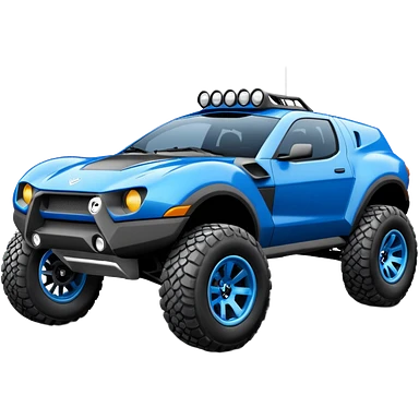 Satan’s evil night blue Dirty and dented Local Motors Rally Fighter off road race car hot rod meets 2013 Toyota 86 trophy truck-style basher flying on a dusty road (silver wheels) emoji