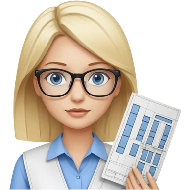 Blonde avec yeux bleus qui est architecte , cheveux ondulés , Sans lunettes emoji