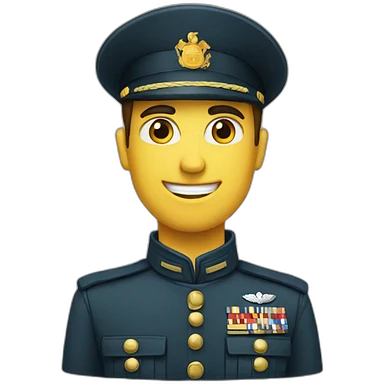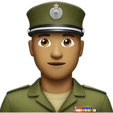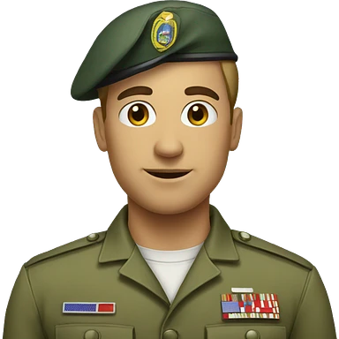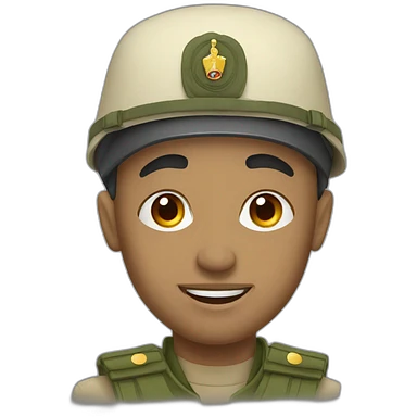 Militaire gespierde licht getinte man met krullend haar en donkere ogen emoji