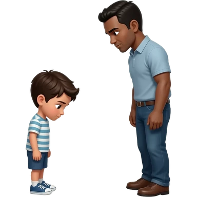 petit garçon peau noir tête baissé, face à un homme noir, on les voit de la tête aux pieds emoji