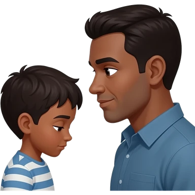 petit garçon peau noir tête baissé, face à un homme noir emoji