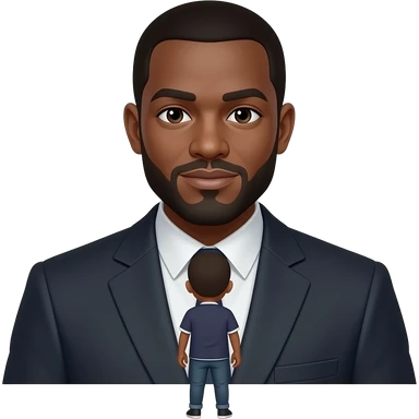petit garçon peau noir tête baissé, devant homme noir emoji