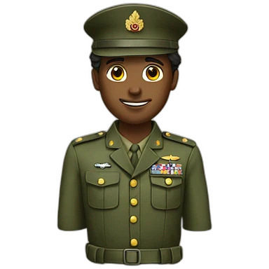 Militaire gespierde licht getinte man met krullend haar en donkere ogen emoji