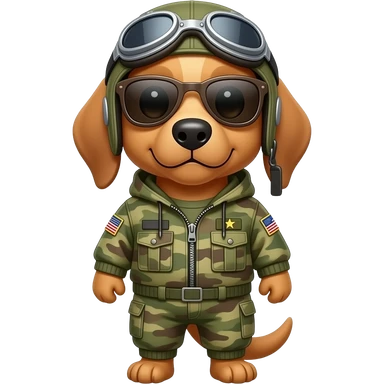 An army dog wearing aviator sunglasses and a cute army jacket emoji