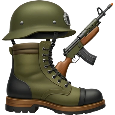 A soldier in military uniform, wearing camouflage, helmet, and boots. Holding a rifle or standing at attention, embodying strength, discipline, and service emoji