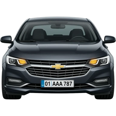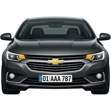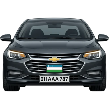 A realistic icon emoji of a metallic black sedan Chevrolet Malibu 2.0L Turbo Premier, dark charcoal tint windows, black alloy 5-spoke rims, Dynamic amber glow LED headlights with sharp laser-beam effect, uzbekistan region number texts "01 | AAA 787" uzb flag in plate emoji