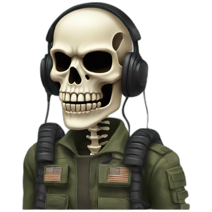 Military Skeleton mask with a long black mask underneath it and headset with a microphone emoji